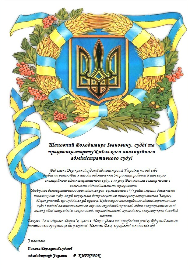 Вітання Голови ДСА України з нагоди відзначення 5-ї річниці роботи Київського апеляційного адміністративного суду