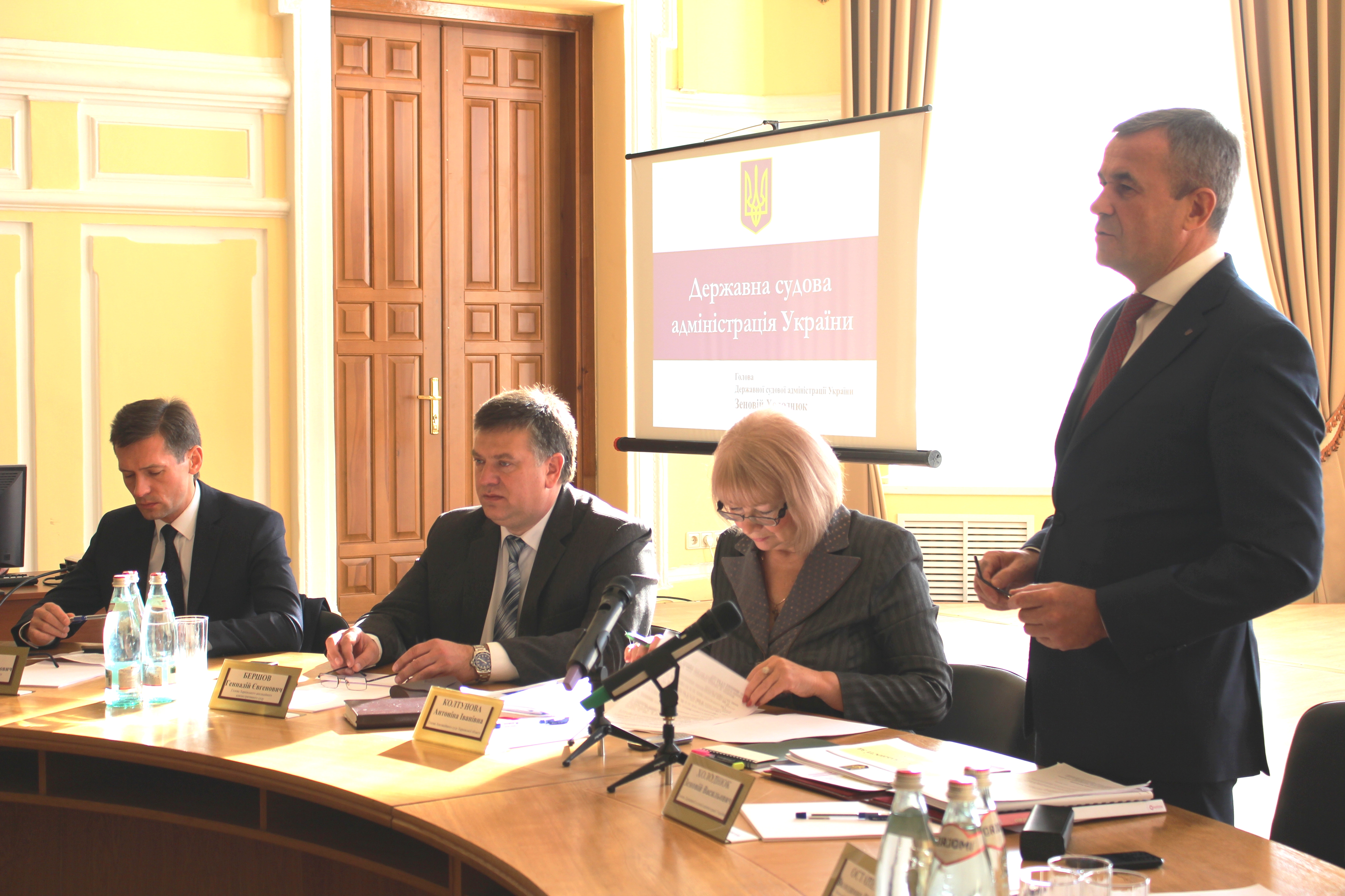 Окрім цього, Голова ДСА України інформував учасників наради про створення відомчої воєнізованої охорони у структурі ДСА України, що дозволить якісно змінити охорону судів, а також суддів і учасників процесу, про завдання ДСА України на 2016 рік та відповів на запитання присутніх.