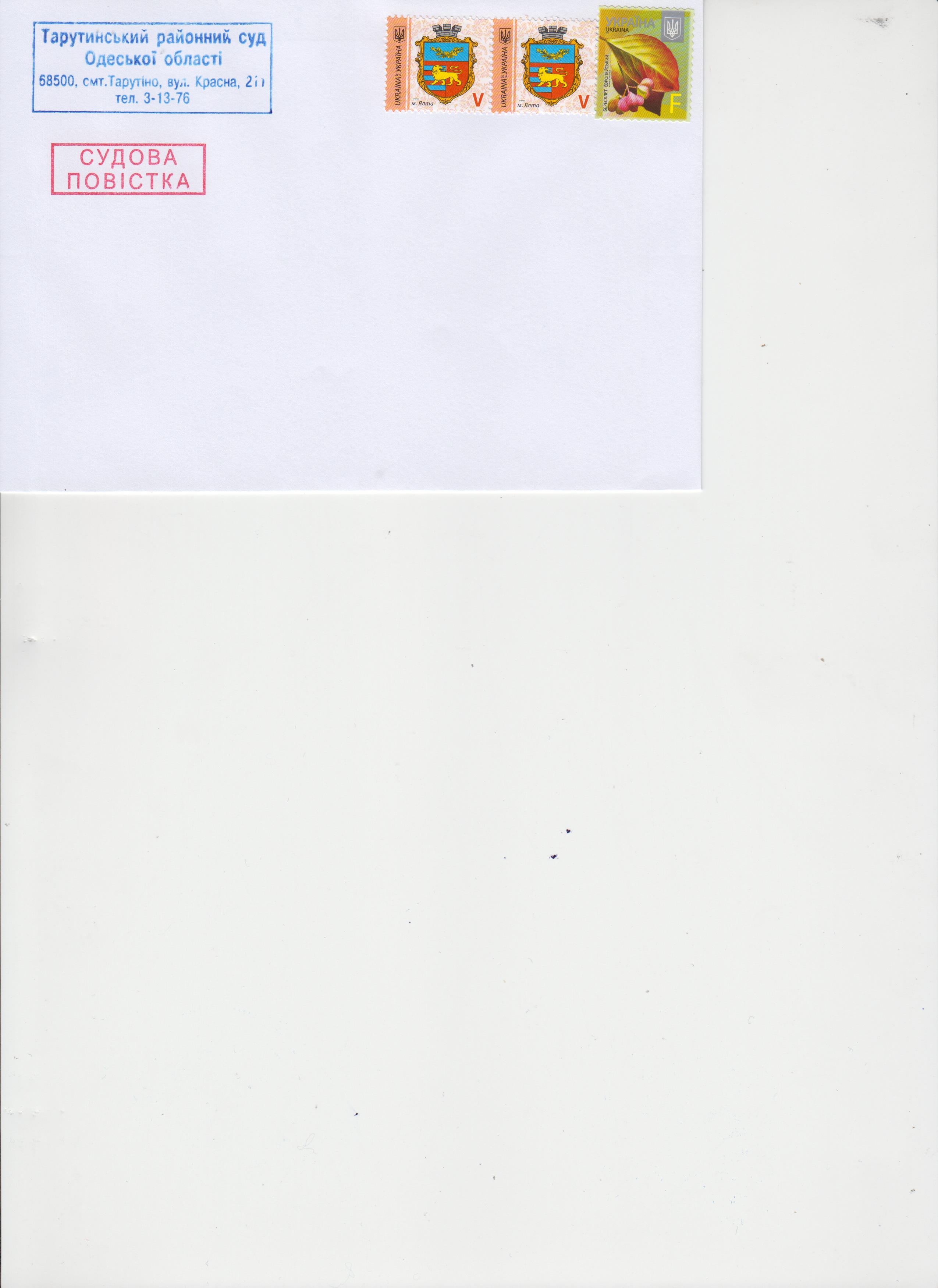 На конверті є відмітка «Судова повістка».