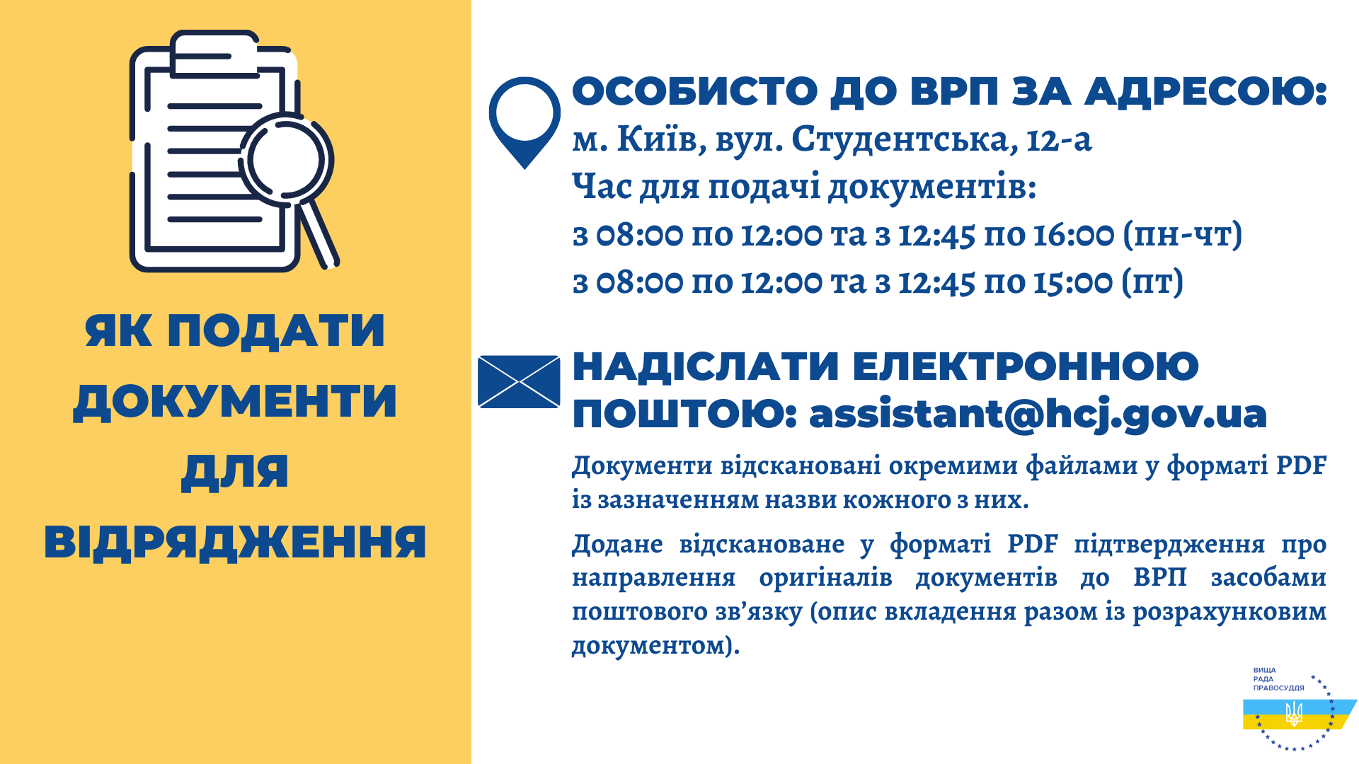Вища рада правосуддя відповідно до рішення від 8 вересня 2020 року № 2585/0/15-20 оголошує про початок процедури відрядження суддів до іншого суду того самого рівня і спеціалізації для здійснення правосуддя, а саме до: