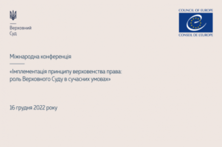 16 грудня 2022 року з 10:00 до 18:00 в онлайн-форматі відбудеться міжнародна конференція «Імплементація принципу верховенства права: роль Верховного Суду в сучасних умовах».