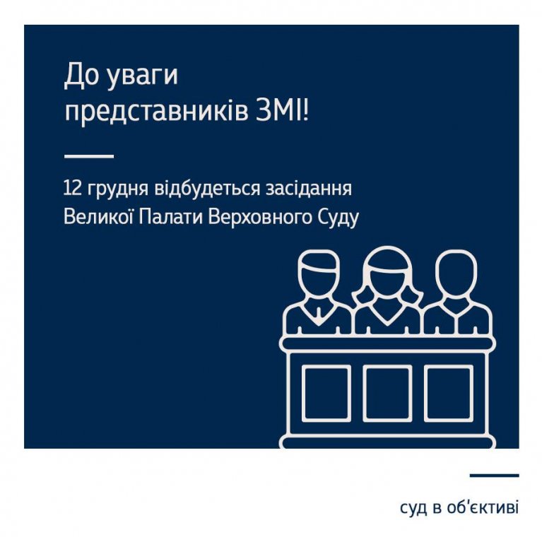 12 грудня 2017 року о 10:00 відбудеться засідання Великої Палати Верховного Суду.