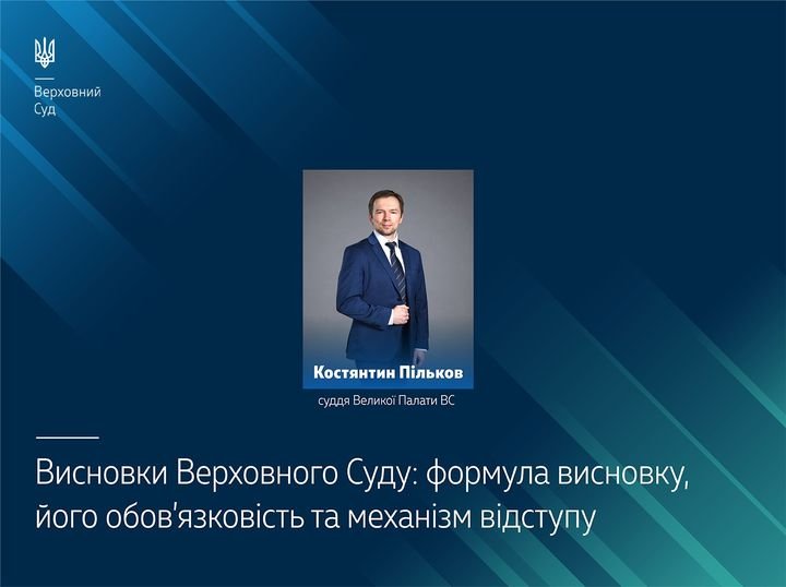 Для вітчизняного правозастосування важливо, щоб висновки Верховного Суду про застосування норм права були сформульовані експліцитно за формулою квазінорми щодо того, як слід застосовувати відповідну норму права. Про це, зокрема, ідеться в новій науковій статті судді Великої Палати Верховного Суду Костянтина Пількова «Висновки Верховного Суду: формула висновку, його обов’язковість та механізм відступу».